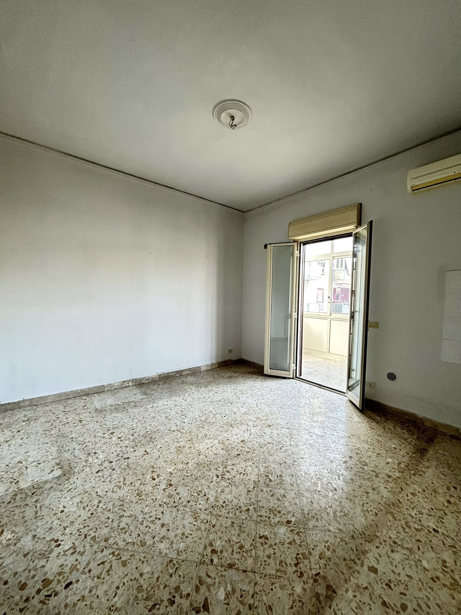 L’immobile è composto da: Ingresso su disimpegno, ampio soggiorno, cucina abitabile, camera matrimoniale, due camerette, servizio, ripostiglio, veranda e balcone terrazzato.